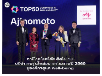 บริษัท อายิโนะโมะโต๊ะ (ประเทศไทย) จำกัด องค์กรชั้นนำระดับโลกด้านอาหารและโภชนาการ ภายใต้ปรัชญา “กินดี มีสุข (Eat Well, Live Well.)” สร้างอีกหนึ่งความภาคภูมิใจ ด้วยการคว้ารางวัล “Top50 Companies in Thailand 2026™” ติ ...