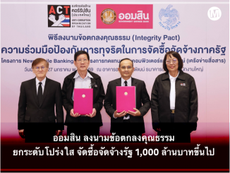 ออมสิน ลงนามข้อตกลงคุณธรรม โครงการความร่วมมือป้องกันการทุจริตวงเงินจัดซื้อจัดจ้าง 1,000 ล้านบาทขึ้นไป