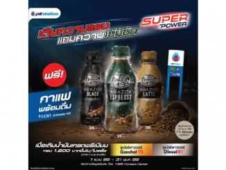 พีทีที สเตชั่น มอบโปรโมชั่นพิเศษ “เติมความแรง แถมความเข้มข้น” เติมน้ำมันเกรดพรีเมียม Super Power ตามเงื่อนไขที่กำหนด รับฟรี! กาแฟพรีเมียมพร้อมดื่มสินค้าใหม่จาก คาเฟ่ อเมซอน มูลค่าสูงสุด 35 บาท