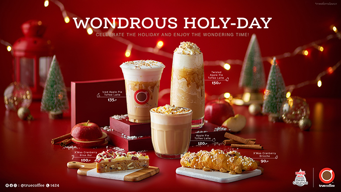 ร่วมต้อนรับและเฉลิมฉลองเทศกาลคริสต์มาสนี้ไปด้วยกัน กับ ทรูคอฟฟี่ เวิลด์คลาสคาเฟ่สุดล้ำ Roastery & Bakery Café สัญชาติไทย โดย นางสาวณฐ เตชะวรรณเวคิน ผู้จัดการทั่วไป (ซ้าย) และ นางสาวศุภวรรณ โภชฌงค์ ผู้จัดการฝ่ายการตลาด (ขวา) บริษัท ทรูไลฟ์สไตล์ รีเทล จำกัด ร่วมส่งมอบความสุขส่งท้ายปี 2021 นี้ ภายใต้ธีมสุดเก๋ “Wondrous Holy-day” สร้างวันอัศจรรย์กับเทศกาลแห่งการเฉลิมฉลองที่ทุกคนรอคอยด้วยเครื่องดื่มที่ได้รับแรงบันดาลใจมาจากขนมในช่วงคริสต์มาสอย่าง Toffee Apple Pie รังสรรค์เป็น “Apple Pie Toffee Latte Series” กาแฟลาเต้ที่โดดเด่นด้วยกรุ่นกลิ่นแอปเปิ้ล ผสานกับความหอมอ่อนๆ ของซินนามอนและทอฟฟี่นัท อร่อยลงตัวใน 3 รูปแบบ ที่มีเลือกตามไลฟ์สไตล์ ทั้งร้อน เย็น และปั่น พร้อมเพิ่มอรรถรสกับฮอลิเดย์นี้ ให้พิเศษยิ่งขึ้นด้วยเมนูพรีเมียมเบเกอรีรสหวานอมเปรี้ยวจาก “Cranberry Series” อบสดใหม่จาก Gontran Cherier ทั้ง “X’Mas Cranberry Brioche” ขนมปังบริออชสไตล์ฝรั่งเศส ผสมแครนเบอร์รี่อบแห้ง ผิวส้มเชื่อม และไวท์ช็อกโกแลต ให้เนื้อสัมผัสที่นุ่ม และ “X’Mas Cranberry Bliss Bar” บลอนดี้เค้ก ให้อารมณ์คล้ายบราวนีที่โดดเด่นด้วยเนื้อหนึบ กับส่วนผสมของไวท์ช็อกโกแลต และแครนเบอร์รี่อบแห้ง เสริมแต่งด้านบนให้สวยงามด้วยไวท์ช็อกโกแลตอีกชั้นหนึ่ง เติมเต็มให้ช่วงเวลา Celebrate ปีนี้ อบอวลไปด้วยความอร่อย หอมหวาน ละมุนอย่างลงตัวยิ่งขึ้น