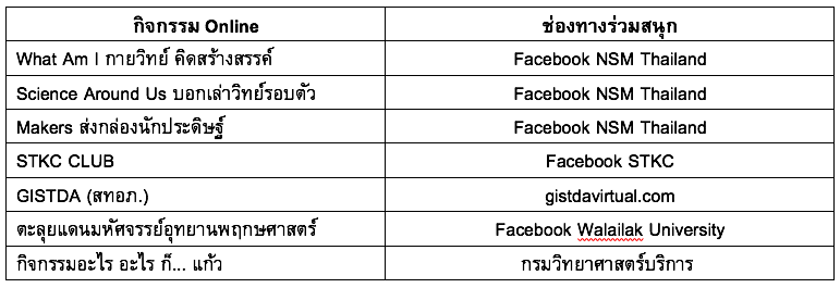 มาถึงกิจกรรม Online ซึ่งถือเป็นกิจกรรมไฮไลท์ของงานถนนสายวิทยาศาสตร์ใน ปี 2565 นี้ ซึ่งสามารถร่วมสนุกกันได้ทั้ง ในรูปแบบ Live Event และการประกวดแข่งขันกิจกรรมทาง Facebook Fanpage หลากหลายกิจกรรม สุดสร้างสรรค์ พร้อมรับของรางวัลมากมาย อาทิ