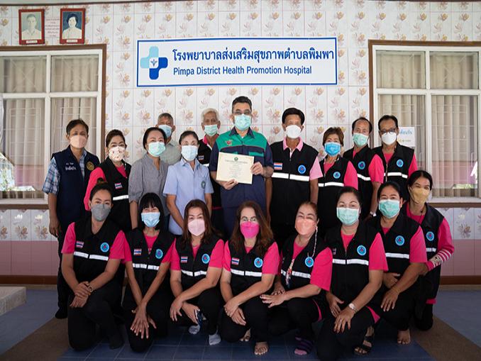 กมลดิษฐ สมุทรโคจร กรรมการ และรองกรรมการผู้จัดการ บริษัท คาราบาวกรุ๊ป จำกัด (มหาชน) และ กนกกร ใจชื่น ผู้จัดการฝ่ายประชาสัมพันธ์ บริษัท คาราบาวตะวันแดง จำกัด ตัวแทนมูลนิธิคาราบาวมอบเงินบริจาค 100,000 บาท เมื่อวันที่ 23 ธันวาคม 2564 ให้กับโรงพยาบาลส่งเสริมสุขภาพตำบลพิมพา ซึ่งเป็นหน่วยงานท้องถิ่นที่ดูแล และให้บริการด้านสาธารณสุขแก่ประชาชนในพื้นที่เขตบางปะกงโดยมี คุณพรทิพย์ มิ่งเจริญ ผู้อำนวยการโรงพยาบาลส่งเสริมสุขภาพตำบลพิมพา และคณะทำงานเป็นผู้รับมอบ โดยในปัจจุบันโรงพยาบาลทำหน้าที่ส่งเสริมสุขภาพของประชาชนใน ตำบลพิมพา และให้บริการแก่ประชาชนทั่วไป ในเรื่องของการส่งเสริมสุขภาพ การป้องกันควบคุมโรค การรักษาพยาบาล และการปฐมพยาบาลเบื้องต้น