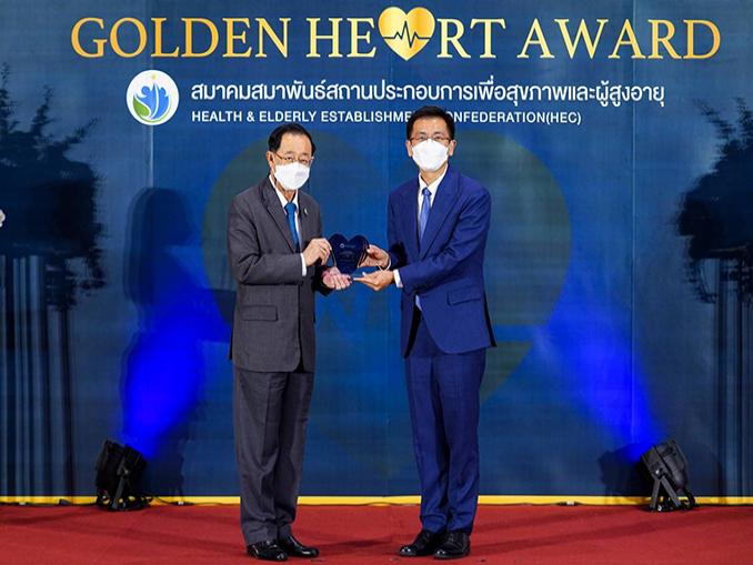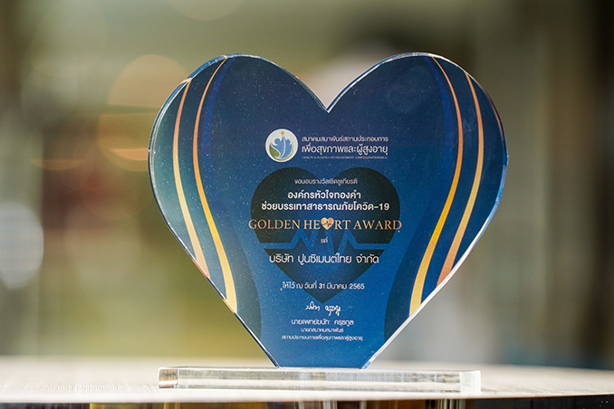 นายวชิระชัย คูนำวัฒนา Head of Service Solution Business, เอสซีจี เป็นตัวแทนรับมอบรางวัล GOLDEN HEART AWARD รางวัลสำหรับองค์กรทำดีต่อเนื่องช่วยสังคมฝ่าวิกฤตโรคโควิด-19 โดยสมาคมสมาพันธ์สถานประกอบการเพื่อสุขภาพและผู้สูงอายุ HEC ในปี 2565 จากนายอาคม เติมพิทยาไพสิฐ รัฐมนตรีว่าการกระทรวงการคลัง โดยเอสซีจีทั้ง 3 กลุ่มธุรกิจร่วมคิดค้นและสร้างนวัตกรรมเพื่อช่วยคนไทยฝ่าวิกฤตสำคัญของประเทศ ตั้งแต่การป้องกัน การตรวจและดูแลรักษาโรคโควิด-19 เช่น แคปซูลเคลื่อนย้ายผู้ป่วยและห้องแยกป้องกันเชื้อแบบเคลื่อนที่จากกลุ่มธุรกิจเคมิคอลส์ การออบแบบและพัฒนาเตียงกระดาษสำหรับโรงพยาบาลสนาม ถุงซักผ้าละลายน้ำของกลุ่มธุรกิจแพคเกจจิ้ง และกลุ่มธุรกิจซิเมนต์-ผลิตภัณฑ์ก่อสร้างก็ได้มีการคิดค้นห้องปฏิบัติการทางการแพทย์ต่อยอดคอนเซปท์ Modular Unit กับนวัตกรรมด้านต่างๆ เช่น ห้องไอซียู ห้อง X-Ray ห้องผู้ป่วยฉุกเฉิน รถวัคซีนเคลื่อนที่คุมความเย็น และอีกหลายๆ โซลูชัน โดยมีมูลค่ารวมทุกโครงการประมาณ 470 ล้านบาท นอกจากนี้ เอสซีจี ยังใช้พื้นที่ภายใน SCG Campus เปิดเป็นศูนย์ฉีดวัคซีนป้องกันโรคโควิด-19 โดยที่ผ่านมาได้ให้บริการประชาชนทั่วไปรวมแล้วกว่า 250,000 คน