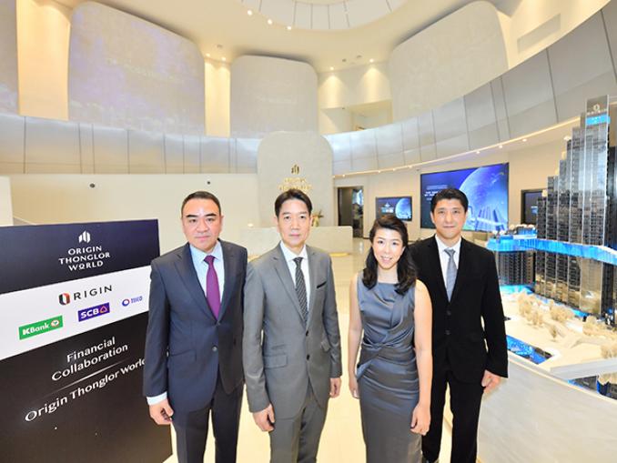 พีระพงศ์ จรูญเอก (ที่ 2 จากซ้าย) ประธานเจ้าหน้าที่บริหาร บริษัท ออริจิ้น พร็อพเพอร์ตี้ จำกัด (มหาชน) พร้อมด้วย นันทิกา ศันสนียเกียรติ ผู้ช่วยกรรมการผู้จัดการ ธนาคารกสิกรไทย (KBank), ธีระเดช ศรีธระชิยานนท์ ผู้ช่วยผู้จัดการใหญ่ ฝ่าย Corporate Banking ธนาคารไทยพาณิชย์ จำกัด (มหาชน) และ มานพ เพชรดำรงสกุล หัวหน้าธุรกิจขนาดใหญ่ Head of Corporate Finance ธนาคารทิสโก้ จำกัด (มหาชน) ร่วมลงนามสัญญาให้การสนับสนุนทางการเงิน เพื่อพัฒนาโครงการ ออริจิ้น ทองหล่อ เวิลด์ (Origin Thonglor World) โครงการระดับเมกะโปรเจกต์ใจกลางทองหล่อ ที่จะตอบโจทย์ทั้งการอยู่อาศัย การทำงาน และการใช้ชีวิตอย่างครบวงจร มูลค่าโครงการรวมมากถึง 15,000 ล้านบาท ณ Sales Gallery โครงการ ออริจิ้น ทองหล่อ เวิลด์ เมื่อเร็วๆ นี้