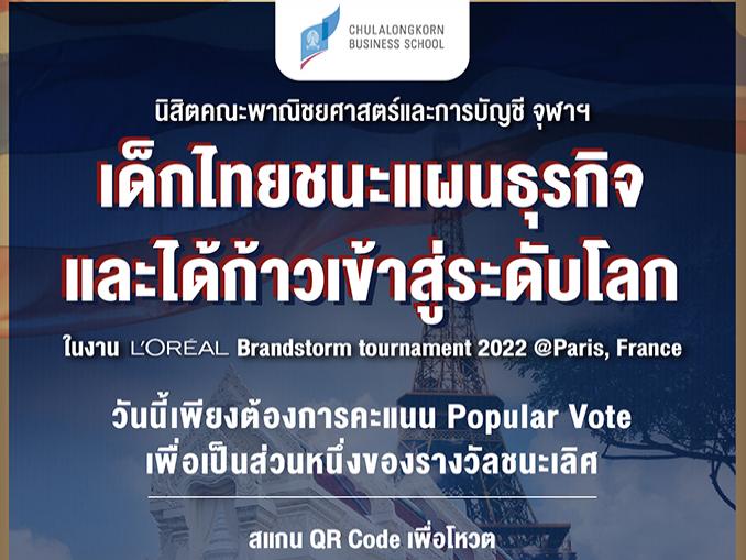 ขอทุกท่านช่วยส่งพลังโหวตเพื่อเป็นส่วนหนึ่งของ popular vote ในเวทีระดับโลกให้กับเด็กไทย ความสามารถของเด็กไทยในเวทีระดับโลก ไม่ได้เก่งแค่การร้องเพลง ไม่ใช่เก่งแค่ดนตรี ไม่ใช่เด่นเรื่องของประกวดความงามเท่านั้น แต่เด็กไทยวันนี้ได้ก้าวสู่ในเวทีระดับโลกด้านประกวดการแข่งขันทางธุรกิจ เช่นกัน เราจะได้ร่วมส่งเด็กไทยไปไกลถึงกรุงปารีส กับงาน L'Oréal Brandstorm 2022 Business Case Competition
