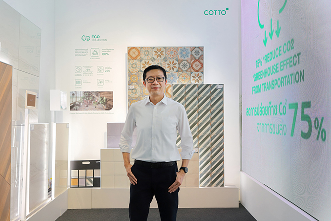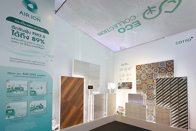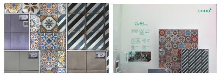 ปิดท้ายกันด้วย นวัตกรรมพิเศษสุดที่สะท้อนถึงการตระหนักในการอนุรักษ์สิ่งแวดล้อมที่น่าสนใจในปีนี้ ก็คือ กระเบื้องในกลุ่ม ECO COLLECTION จาก COTTO ที่ลดการใช้ทรัพยากรธรรมชาติใหม่ โดยการนำ WASTE ในกระบวนการการผลิตนำหมุนกลับมาใช้ใหม่ 80% ลดการใช้ทรัพยากรธรรมชาติใหม่ 80% ลดการปล่อยก๊าซ Co2 จากการขนส่ง 75%เทียบเท่ากับเราปลูกต้นไม้ใหญ่กว่า 944 ต้น กระบวนการหมุนเวียนน้ำ ลดการใช้น้ำใหม่ 25% อีกทั้งปราศจากสารอินทรีย์ระเหย และสารเคมีโลหะหนัก ที่มีผลต่อธรรมชาติ และมนุษย์