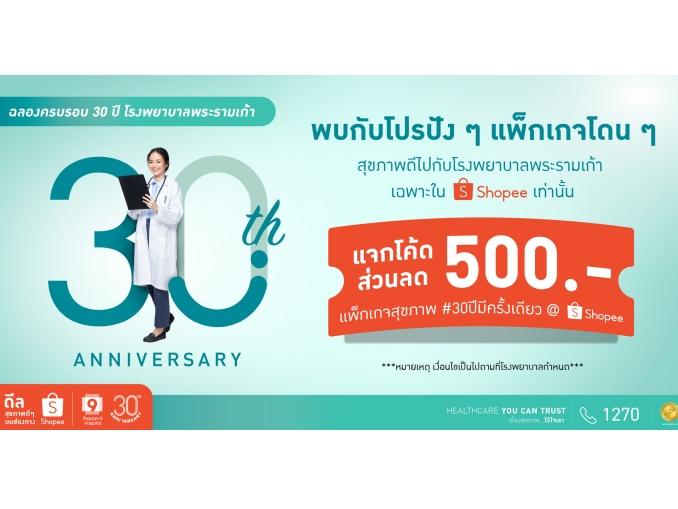 ทั้งนี้ พร้อมรับโค้ดส่วนลด 500 บาท เมื่อช้อปแพ็กเกจสุขภาพใดก็ได้ของแคมเปญครบรอบ 30 ปี ในร้านค้าออฟฟิเชียลสโตร์ Praram 9 Hospital บน Shopee Mall ครบ 10,000 บาท/ยอดซื้อ และรับโค้ดส่วนลด 200 บาท เมื่อช้อปแพ็กเกจสุขภาพใดก็ได้ของแคมเปญครบรอบ 30 ปี ผ่าน Shopee ครบ 5,000 บาท/ยอดซื้อ โค้ดส่วนลดถึง 30 กันยายน 2565