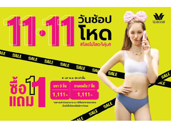 วาโก้ แบรนด์ชุดชั้นในยอดนิยมอันดับหนึ่งของไทย ฉลองต้อนรับเทศกาลคนโสด Single Day ส่งดีลเด็ด 11.11 วันช้อป โหด…โสดไม่โสดก็คุ้ม ลดอลัง ปังทุกดีล กับโปรโมชัน ซื้อ 1 แถม 1 มอบความพิเศษส่งท้ายปีสุดยิ่งใหญ่ เมื่อซื้อผลิตภัณฑ์ชุดชั้นในวาโก้ที่ร่วมรายการ อาทิ บรา 3 ชิ้น ในราคาเพียง 1,111 บาท หรือซื้อกางเกงใน 7 ชิ้น ในราคา 1,111 บาท