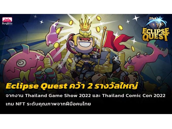 Eclipse Quest : ดันเจี้ยนจันทรคราส เกม NFT คุณภาพจากฝีมือคนไทย พิสูจน์ฝีมือและความสามารถด้วยการคว้า 2 รางวัลใหญ่ จากโครงการ The Game Maker ในงาน Thailand Game Show 2022 และรางวัล Block Culture Award จากงาน Thailand Comic Con 2022 x Festiverse เป็นการตอกย้ำความเป็นเกมที่มีคุณภาพและน่าเชื่อถืออย่างแท้จริง ซึ่งตอนนี้เกม Eclipse Quest ได้เปิดให้ทดลองเล่น Demo และยังมีกิจกรรมอีกมากมายให้ร่วมสนุกกัน ใน Community ทุกช่องทางของ Eclipse Quest