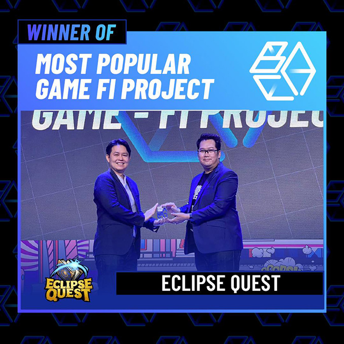โดยเกม Eclipse Quest ได้คว้ารางวัล MOST POPULAR THAI GAME-FI PROJECT มาครอบครอง เป็นเครื่องหมายยืนยันความสำเร็จของตัวเกมไปอีกขั้น