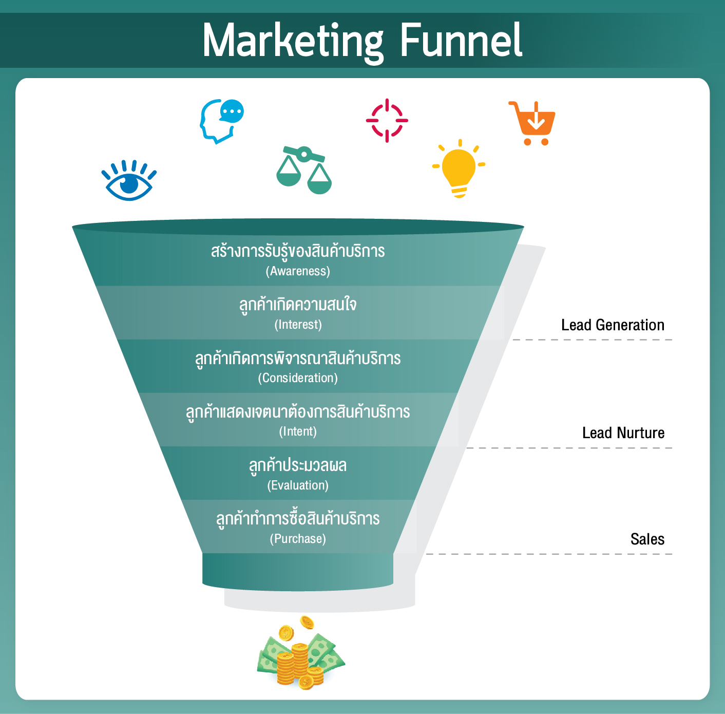 Marketing Funnel คือ ขั้นตอนการวางแผนการตลาดที่จะช่วยให้เจ้าของแบรนด์และนักการตลาดสามารถบรรลุเป้าหมายของธุรกิจได้ ซึ่งครอบคลุมตั้งแต่การสร้างการรับรู้และดึงดูดโน้มน้าวกลุ่มลูกค้าเป้าหมายให้เกิดความสนใจจนถึงการสร้างยอดขายอย่างมีระบบในโครงสร้างรูปแบบกรวย และยังทำให้เข้าใจในกระบวนการเปลี่ยนกลุ่มลูกค้าเป้าหมายให้เป็นลูกค้าที่แท้จริง หากเจ้าของแบรนด์และนักการตลาดเข้าใจ Marketing Funnel จะทำให้เห็นมุมมองของทั้งการตลาดและการขายได้อย่างชัดเจน ตั้งแต่ ‘การสร้างให้เกิดโอกาสทางการขาย’ (Lead Generation) หรือการสร้าง Lead ไปจนถึง ‘การปิดการขาย’ (Sales) ได้อีกด้วย