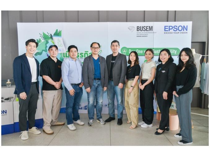 ดร.วุฒนิพงษ์ วราไกรสวัสดิ์ (กลาง) คณบดีคณะการสร้างเจ้าของธุรกิจและการบริหารกิจการ พร้อมรองคณบดี มหาวิทยาลัยกรุงเทพ ให้เกียรติต้อนรับนายคณิน ธรรมภิบาลอุดม หัวหน้าฝ่ายบริหารผลิตภัณฑ์และการตลาด บริษัท เอปสัน (ประเทศไทย) และผู้ประกอบการรุ่นใหม่ที่สร้างแบรนด์สินค้าเพื่อสิ่งแวดล้อมของคนไทย ได้แก่ SHE KNOWS แบรนด์เสื้อผ้าแฟชั่นรักโลก Maddy Hopper แบรนด์รองเท้าจากวัสดุธรรมชาติของไทย และ Qualy แบรนด์สินค้าตกแต่งบ้านจากวัสดุรีไซเคิล ในโอกาสที่เอปสันได้จัดงานสัมมนาในหัวข้อ ‘Day One with Sustainability’ หรือ ‘ก้าวแรกธุรกิจด้วยความยั่งยืน’ เพื่อถ่ายทอดเรื่องราวการใช้แนวคิดด้านความยั่งยืนมาสร้างธุรกิจให้สำเร็จจนเป็นที่นิยมในหมู่คนรุ่นใหม่ พร้อมส่งต่อแนวคิดการนำความยั่งยืนเป็นสารตั้งต้นธุรกิจ ณ มหาวิทยาลัยกรุงเทพ เมื่อเร็วๆ นี้