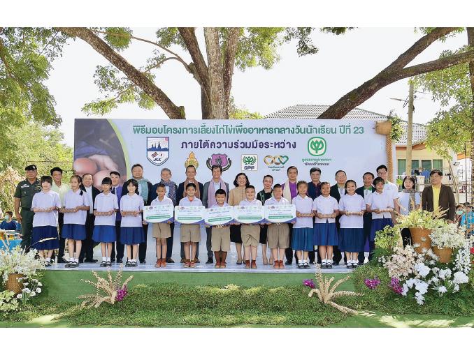 นายจอมกิตติ ศิริกุล รองกรรมการผู้จัดการใหญ่อาวุโส ด้านพัฒนาความยั่งยืนภาครัฐและกิจการสัมพันธ์ เครือซีพี และผู้ช่วยบริหารสำนักประธานคณะกรรมการบริหาร ซีพีเอฟ ในฐานะกรรมการและเลขาธิการมูลนิธิเจริญโภคภัณฑ์พัฒนาชีวิตชนบท เปิดเผยว่า มูลนิธิฯ ได้ดำเนินโครงการเลี้ยงไก่ไข่เพื่ออาหารกลางนักเรียนอย่างต่อเนื่องเข้าสู่ปีที่ 35 มุ่งส่งเสริมให้เด็กและเยาวชนในโรงเรียนพื้นที่ห่างไกลและในถิ่นทุรกันดาร ได้บริโภคไข่ไก่สดคุณภาพดีที่นักเรียนช่วยกันดูแล เพื่อเสริมสร้างโภชนาการที่ดี เติบโตสมวัยทั้งด้านร่างกายและสติปัญญา เป็นแหล่งเรียนรู้การจัดการอาชีพเกษตรเชิงธุรกิจให้กับครู นักเรียนได้เรียนรู้การบริหารจัดการธุรกิจเกษตร ที่ประยุกต์ใช้กับอาชีพในอนาคต ขณะเดียวกัน สามารถบริหารจัดการผลผลิตไข่ไก่จำหน่ายให้แก่ชุมชนให้มีรายได้หมุนเวียน ต่อยอดขยายผลเกิดเป็นกิจการเพื่อสังคม (Social Enterprise) พึ่งพาตนเองได้อย่างยั่งยืน