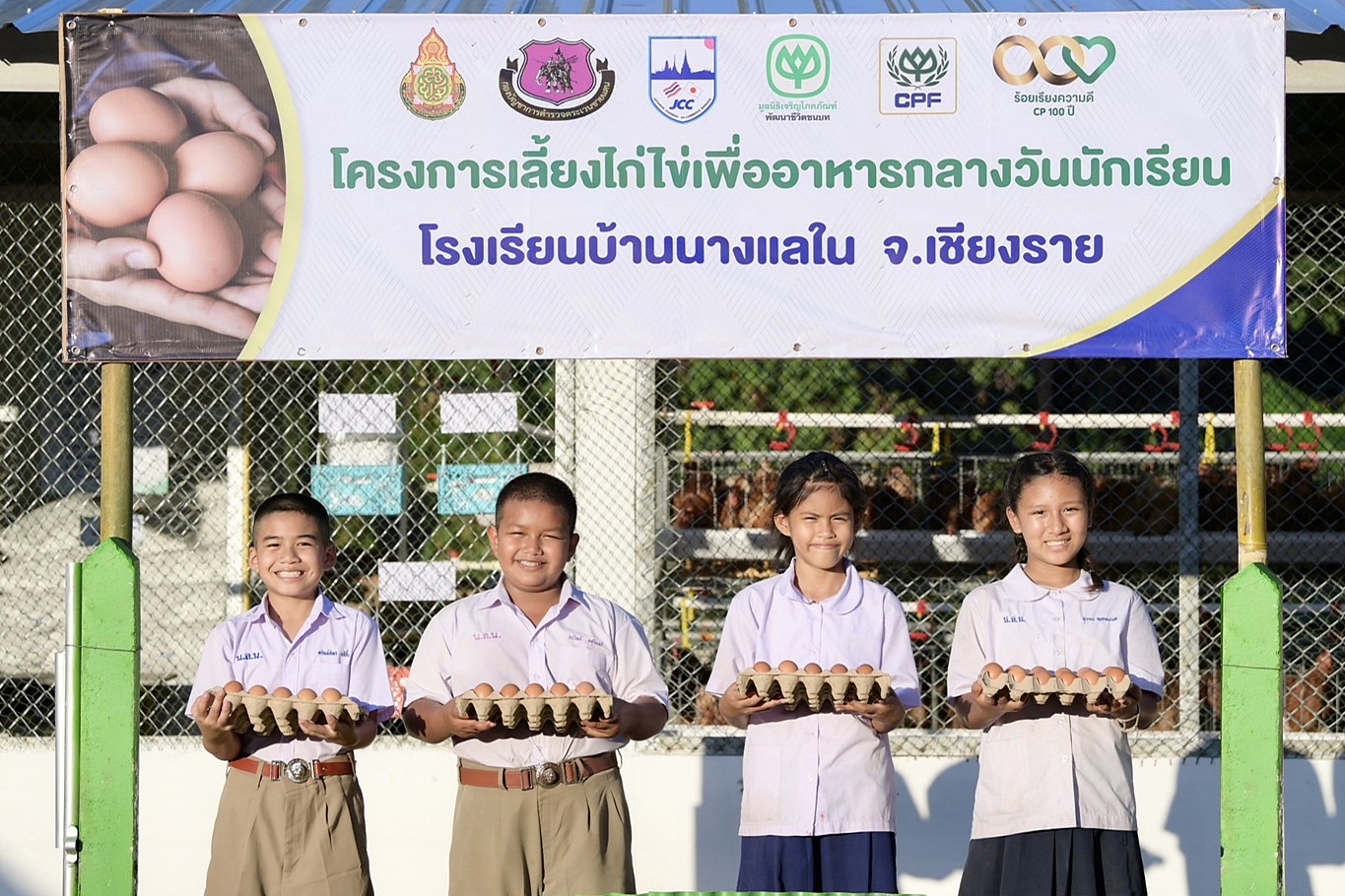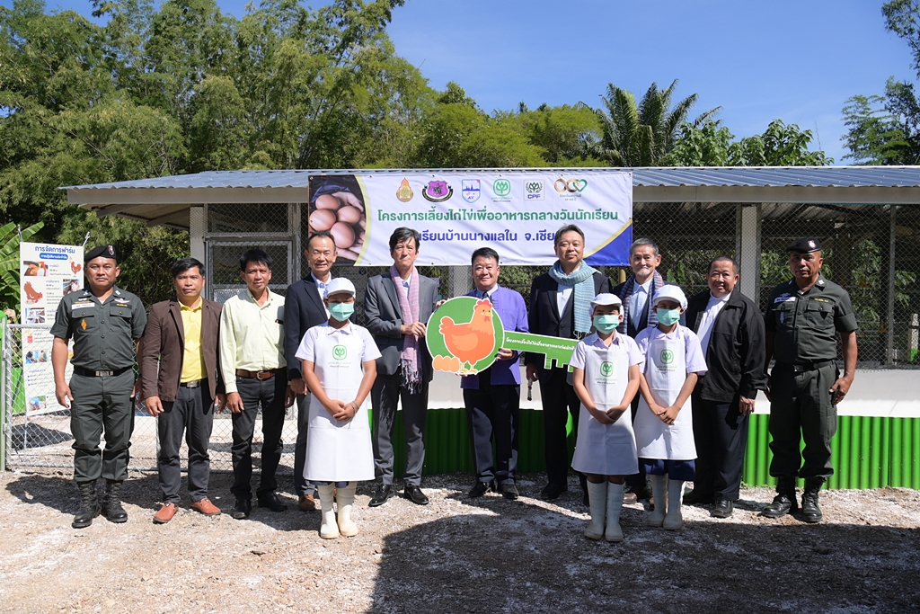 มูลนิธิเจริญโภคภัณฑ์พัฒนาชีวิตชนบท และ บริษัท เจริญโภคภัณฑ์อาหาร จำกัด (มหาชน) หรือ ซีพีเอฟ ร่วมกับ หอการค้าญี่ปุ่น-กรุงเทพฯ หรือ เจซีซี ร่วมส่งมอบโครงการเลี้ยงไก่ไข่เพื่ออาหารกลางวันนักเรียน ประจำปี 2565 ณ โรงเรียนบ้านนางแลใน ต.นางแล อ.เมือง จ.เชียงราย ได้รับเกียรติจาก นางสุภาพรรณ หมั่นเจริญ รองผู้ว่าราชการจังหวัดเชียงราย เป็นประธานในพิธี โดยมี นายโนริอากิ ยามาชิตะ รองประธานหอการค้าญี่ปุ่น-กรุงเทพฯ และประธานส่วนการศึกษาคณะกรรมการฝ่ายความช่วยเหลือสังคม นายสมคิด วรรณลุกขี รองกรรมการผู้จัดการอาวุโส ซีพีเอฟ นายจอมกิตติ ศิริกุล รองกรรมการผู้จัดการใหญ่อาวุโส ด้านพัฒนาความยั่งยืนภาครัฐและกิจการสัมพันธ์ เครือเจริญโภคภัณฑ์ ร่วมมอบโครงการ พร้อมด้วย หัวหน้าส่วนราชการในจังหวัดเชียงราย ครู นักเรียน และผู้แทนโรงเรียนจากทั่วประเทศ