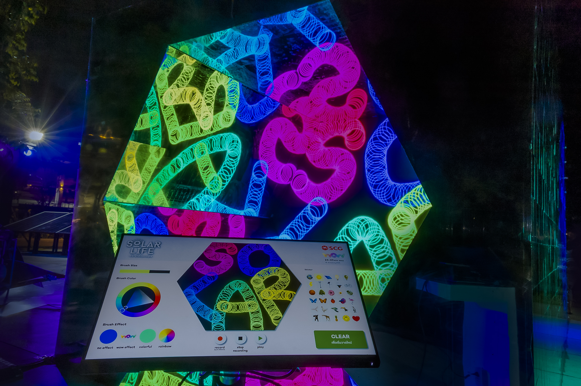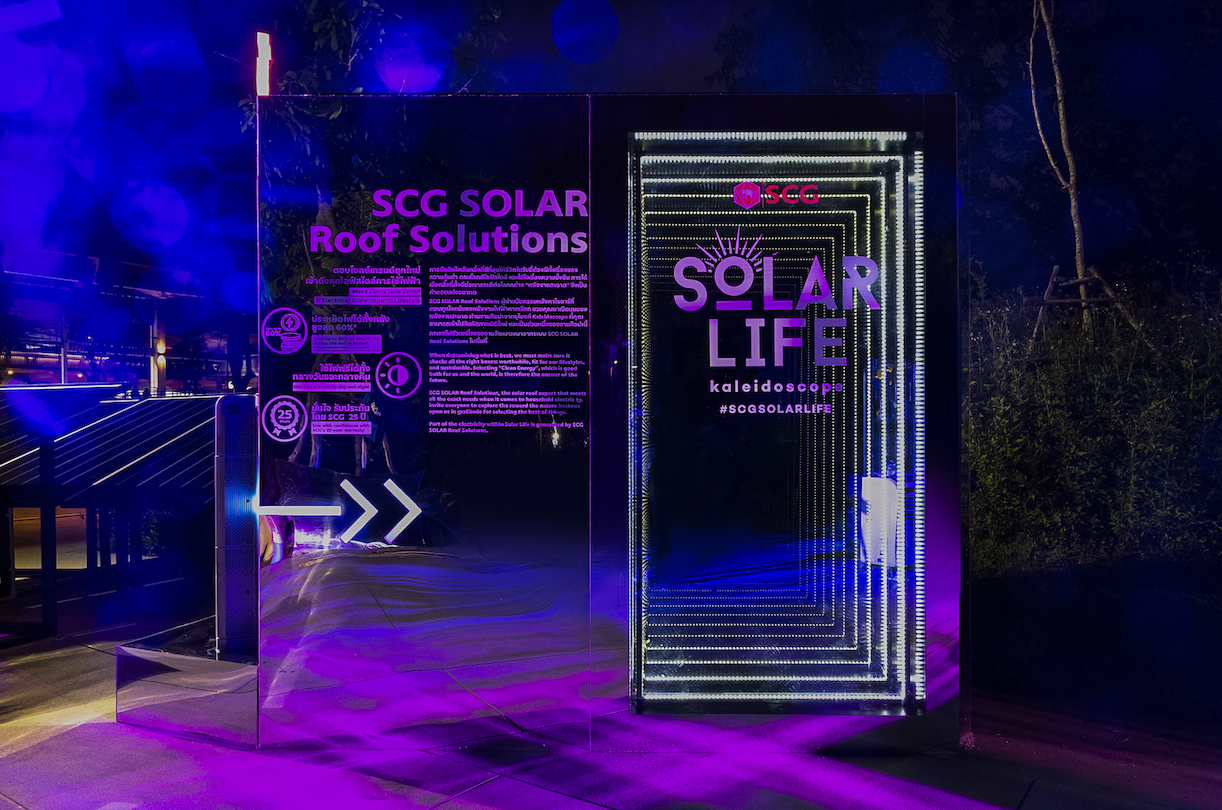 ‘SOLAR LIFE’ สร้างคุณภาพชีวิตที่ดี เริ่มต้นที่พลังงานสะอาด เป็นการนำเอานวัตกรรมโซลาร์ รูฟ มาจัดแสดงผ่านงานแสดงศิลปะเพื่อให้เข้าถึงผู้คนได้ง่ายขึ้น พร้อมชูจุดเด่นด้านเทคโนโลยีที่สอดแทรกเนื้อหาด้วยการเล่าเรื่องผ่านอาคารที่จัดแสดง และเพื่อทำความรู้จักกับระบบการทำงานของโซลาร์เซลล์ที่มีทั้งระบบ On-Grid การผลิตและการนำไฟฟ้าไปใช้ในเวลากลางวันได้อย่างทันที และระบบ Hybrid การกักเก็บไฟฟ้าไว้ใช้ได้ทั้งกลางวันและกลางคืน พร้อมเน้นย้ำเรื่องการติดตั้งโซลาร์ รูฟ ต้องเป็นไปตามมาตรฐานและปลอดภัย ทั้งยังสามารถลดค่าไฟฟ้าได้สูงสุดถึง 60% พร้อมรับประกัน 25 ปีโดยเอสซีจี เพื่อตอกย้ำความมั่นใจด้วยผู้เชี่ยวชาญที่ตอบทุกโจทย์เรื่องพลังงานไฟฟ้าในบ้าน เลือกสิ่งดีๆ เพื่อยกระดับคุณภาพชีวิตด้วยพลังงานสะอาด