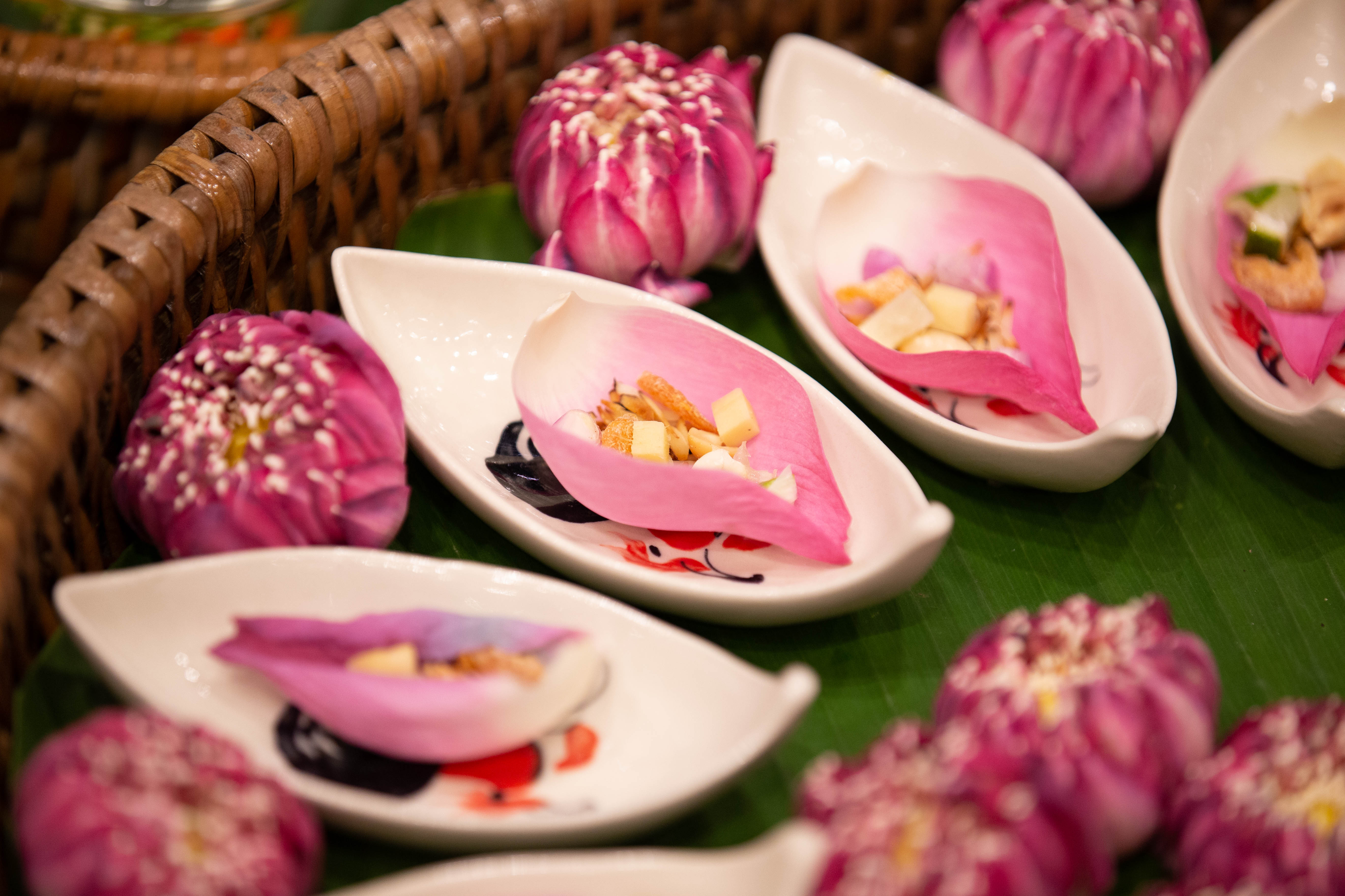 ชั้น LG ซึ่งเป็นศูนย์ผู้สื่อข่าว นอกจากอาหารที่มีความหลากหลายทั้งไทยและนานาชาติแล้ว ในแต่ละวันจะเกี่ยวกับขนมไทย อาทิ ขนมบุหลันดั้นเมฆ ช่อม่วง ล่าเตียง ขนมเบื้อง และปั้นสิบนึ่ง ผสมผสานเข้ากับเสน่ห์ของหัตถกรรมและงานผ้าของไทยเข้าไว้ด้วยกัน ในการนำเสนออาหารและศิลปะไทยพื้นบ้าน เพื่อเลี้ยงรับรองผู้สื่อข่าวจากทั่วโลก สำหรับชั้น G ซึ่งเป็นพื้นที่ทานอาหารของผู้เข้าร่วมประชุม โดยในแต่ละวันจะนำเสนอวัตถุดิบพื้นถิ่นที่โดดเด่นของไทย อาทิ ส้มโอ ดอกบัว มะพร้าว และกล้วย ในขณะที่ชั้น 1 ซึ่งเป็นชั้นสำหรับเลี้ยงรับรองผู้นำเขตเศรษฐกิจเอเปค รัฐมนตรีเอเปคและเจ้าหน้าที่อาวุโสเอเปค เราได้รังสรรค์อาหาร ที่มีความเป็นไทยหลากหลายรูปแบบ ไม่ว่าจะเป็นอาหารไทยแนวสตรีทฟู้ดจาก 4 ภาค อาหารไทยต้นตำรับรสเลิศ และอาหารไทยฟิวชั่น