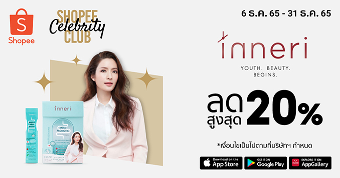 ให้นักช้อปคนไทยได้สัมผัสกับ อินเนอริ เมต้า โพรไบโอติก ก่อนใครกันได้แล้วที่ร้านค้าออฟฟิเชียลสโตร์ inneri_official บน Shopee ที่มาพร้อมกับแคมเปญและข้อเสนอสุดเอ็กซ์คลูซีฟส่งท้ายปี ตั้งแต่วันที่ 7 ธันวาคม 2565 เป็นต้นไป เฉลิมฉลองมหกรรมช้อปปิ้งออนไลน์ Shopee 12.12 ลดใหญ่วันเกิด ไม่ว่าจะเป็น