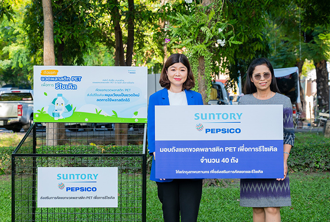 ซึ่งล่าสุด ซันโทรี่ เป๊ปซี่โค ประเทศไทย นำโดย นางสาววิภาวรรณ ทัศนปรีชาชัย ผู้จัดการอาวุโสฝ่ายบรรษัทสัมพันธ์ บริษัท ซันโทรี่ เป๊ปซี่โค เบเวอเรจ (ประเทศไทย) จำกัด ร่วมรณรงค์สร้างความตระหนักรู้ถึงความสำคัญของการคัดแยกบรรจุภัณฑ์หลังการบริโภค โดยสนับสนุนถังแยกขวดพลาสติก PET เพื่อการรีไซเคิล จำนวน 40 ถัง ติดตั้งทั่วบริเวณงานกาชาด ประจำปี 2565 ซึ่งจัดขึ้นระหว่างวันที่ 8 – 18 ธันวาคม 2565 ณ สวนลุมพินี โดยมีตัวแทนจากกรุงเทพมหานคร นางสาววรนุช สวยค้าข้าว รองผู้อำนวยการสำนักสิ่งแวดล้อมและนายภาณุวัฒน์ อ่อนเทศ ผู้อำนวยการส่วนบริการจัดการมูลฝอย สำนักงานจัดการมูลฝอยและสิ่งปฏิกูล เป็นผู้รับมอบ