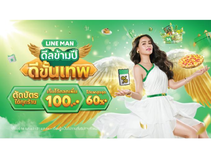 LINE MAN ผู้นำแพลตฟอร์มออนดีมานด์และข้อมูลร้านอาหารของไทย ทุ่มงบ 150 ล้านบาท อัดแคมเปญการตลาดครั้งใหญ่ส่งท้ายปี เปิดตัว “LINE MAN ดีลข้ามปี ดีขั้นเทพ” มอบส่วนลดทั้งแอปฯ แบบจัดเต็ม ทั้งบริการ FOOD DELIVERY, LINE MAN MART และ LINE MAN MESSENGER ให้คนไทยร่วมเฉลิมฉลองและส่งต่อความสุขแก่คนพิเศษแบบคุ้มสุขทุกช่วงเวลากันข้ามปี ตั้งแต่วันนี้ - 31 มกราคม 2566