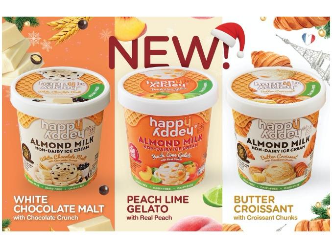 แฮปปี้ แอดดี้ ชวนฉลองเทศกาลแห่งความสุขพร้อมสุขภาพดี ด้วยไอศกรีมวีแกนพรีเมียม 3 รสใหม่ คือ ไอศครีมนมอัลมอนด์ สูตรพีชไลม์ เจลาโต้,ไอศครีมนมอัลมอนด์ สูตรไวท์ช็อกโกแลต มอลต์ ครั้นซ์ และ ไอศครีมนมอัลมอนด์ สูตรบัตเตอร์ ครัวซอง ผสมเนื้อครัวซองต์ ที่มีประโยชน์ต่อร่างกาย ไฟเบอร์สูง มีวิตามินบี วิตามินอีและโฟเลต ไม่มีน้ำตาลทราย แคลอรี่ต่ำ ได้การรับรองด้วยตราสัญลักษณ์ “ไอศกรีมทางเลือกเพื่อสุขภาพ” มี 2 ขนาดคือ 80 กรัม ราคา 89 บาท และ 350 กรัม ราคา 299 บาท จำหน่ายที่ กูร์เมต์ มาร์เก็ต, โฮมเฟรชมาร์ท, ฟู้ดแลนด์ซุปเปอร์มาร์เก็ต และร้าน Happy Addey อาคาร ไทย ซี ซี ถนนสาทร (สถานีรถไฟฟ้าสุรศักดิ์) หรือสั่งผ่านช่องทาง LINE official ของบริษัท @137degrees (มี เครื่องหมาย@), GrabMart , Lineman , FoodPanda Robinhood, Shopee , Lazada และ WeMall ติดต่อสอบถาม โทร 062-3053777