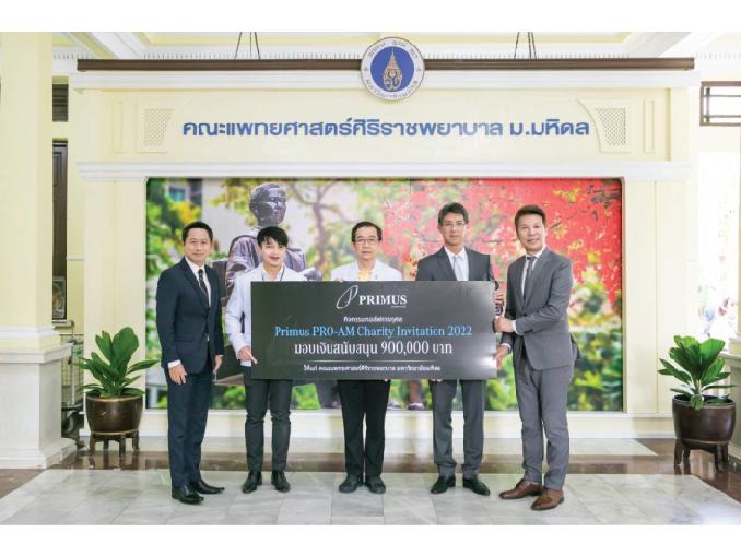นายณัฏฐวุฒิ ตั้งคารวคุณ ประธาน (ที่ 2 จากขวา), นายจิระพล รุจิวิพัฒน์ กรรมการผู้จัดการ (ที่ 1 จากซ้าย) และนายศราวิช ไชยมังกร ผู้จัดการทั่วไป ฝ่ายขาย (ที่ 1 จากขวา) บริษัท ไพรม์มัส ออโต้เฮาส์ จำกัด มอบเงินรายได้จากการจัดแข่งขันกอล์ฟการกุศล Primus Pro-Am Charity Invitation 2022 ที่สนาม The RG City Golf Club จ.ปทุมธานี เมื่อวันที่ 15 พ.ย.ที่ผ่านมา