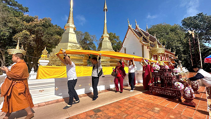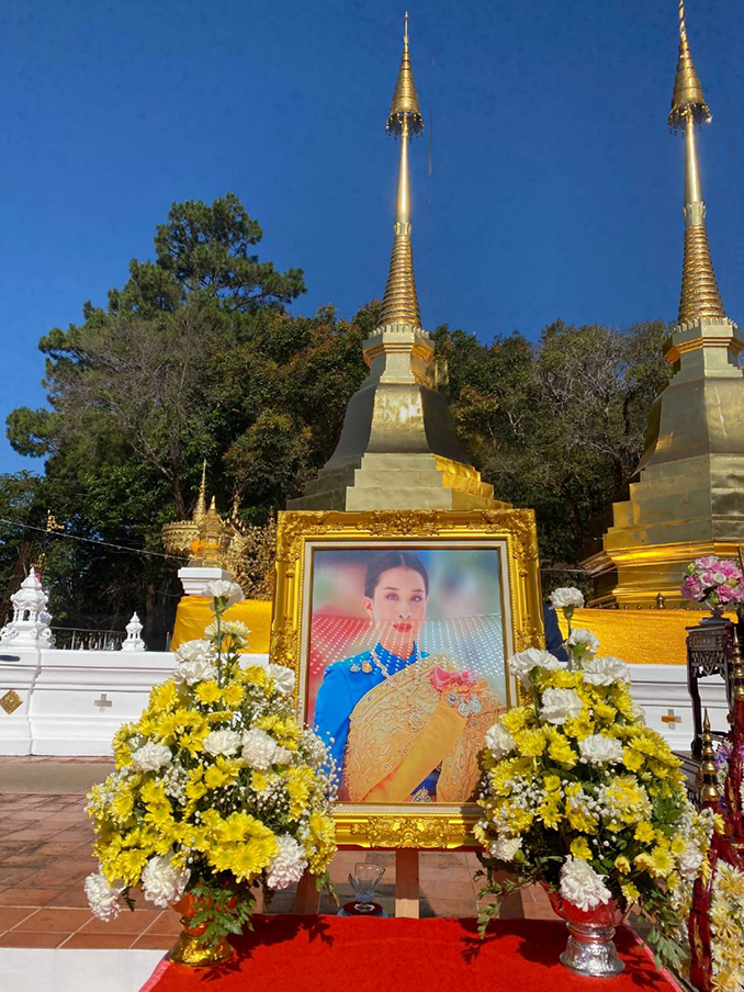 ให้ทรงหายจากอาการประชวรทรงมีพระพลานามัยสมบูรณ์แข็งแรงโดยเร็ววัน โดยนิมนต์พระพุทธิวงศ์วิวัฒน์ ที่ปรึกษาเจ้าคณะจังหวัดเชียงราย เจ้าอาวาสวัดพระสิงห์ พระอารามหลวง จังหวัดเชียงราย มาเป็นประธานสงฆ์ และพระภิกษุสงฆ์ จำนวน 9 รูป มาเจริญพระพุทธมนต์ ถวายผ้าไตร จตุปัจจัยไทยธรรม พร้อมห่มผ้าพระธาตุดอยตุง และอธิษฐานจิตภาวนาถวายพระพรชัยมงคล ณ วัดพระธาตุดอยตุง จังหวัดเชียงราย ขอพระองค์ทรงพระเจริญ