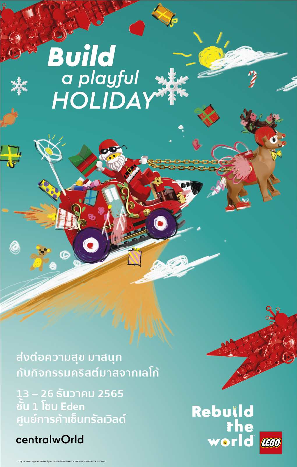 ตื่นตาตื่นใจไปกับโลกแห่งจินตนาการที่จะพาทุกคนในครอบครัวได้สนุก พร้อมเสริมไอเดียขับเคลื่อนพลังแห่งการเรียนรู้ที่งาน “LEGO Build a Playful Holiday” ตั้งแต่วันนี้ - 26 ธ.ค. 65 ที่ ชั้น 1 โซน Eden ศูนย์การค้าเซ็นทรัลเวิลด์
