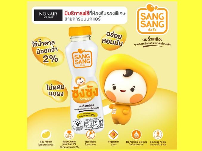 “ซังซัง” นมถั่วเหลืองคั้นสด ผลิตจากเมล็ดถั่วเหลืองจากประเทศแคนาดา รสชาติอร่อย หอมมัน และมีน้ำตาลน้อยกว่า 2% พร้อมบริการรับรองผู้โดยสาร ณ ห้องรับรองพิเศษสายการบินนกแอร์ “Nokair Lounge” สำหรับผู้โดยสารที่ถือบัตรโดยสารประเภท Nok Max และ สมาชิก Nok Fan Club ระดับ Nok Smile Plus ที่เดินทางกับสายการบินนกแอร์