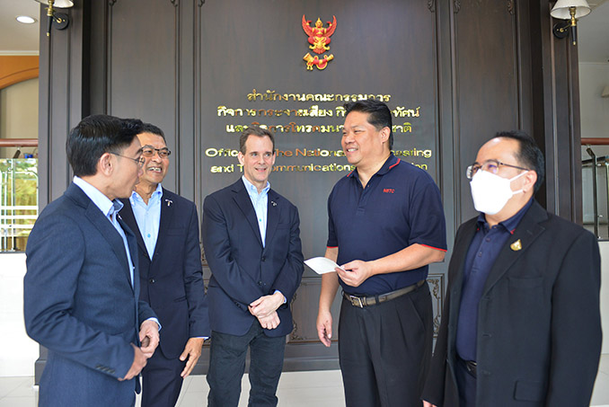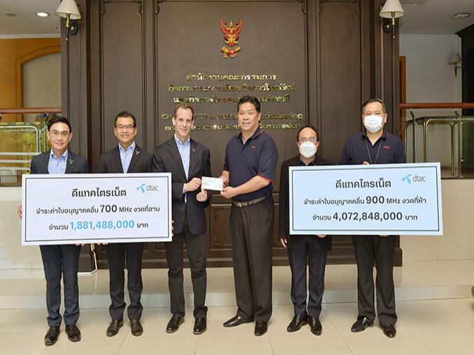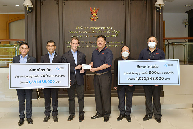 บรรยายภาพ 01: นายสตีเฟ่น เจมส์ แฮลวิก (ที่ 3 จากซ้าย) รักษาการรองประธานเจ้าหน้าที่บริหาร กลุ่มกิจการองค์กร บริษัท โทเทิ่ล แอ็คเซ็ส คอมมูนิเคชั่น จำกัด (มหาชน) หรือดีแทค พร้อมด้วย นายนฤพนธ์ รัตนสมาหาร (ที่ 2 จากซ้าย) ผู้อำนวยการอาวุโส สายงานรัฐกิจสัมพันธ์ และนายเลิศรัตน์ รตะนานุกูล (ซ้ายสุด) ผู้อำนวยการอาวุโส ฝ่ายประสานงานภาครัฐ ชำระค่าคลื่นความถี่ 700 MHz งวดที่ 3 และค่าคลื่นความถี่ 900 MHz งวดที่ 5 โดยมีนายไตรรัตน์ วิริยะศิริกุล (ที่ 4 จากซ้าย) รักษาการแทน เลขาธิการ กสทช. เป็นผู้รับมอบ พร้อมด้วยนายสุทธิศักดิ์ ตันตะโยธิน (ที่ 5 จากซ้าย) รองเลขาธิการ กสทช. และนายเนติพงษ์ ตลับนาค (ขวาสุด) ผู้อำนวยการสำนัก สำนักการอนุญาตประกอบกิจการโทรคมนาคม 1 กสทช. เมื่อวันที่ 6 มกราคม 2566