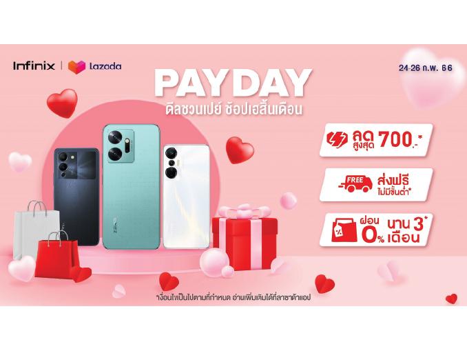 2. เมื่อซื้อสินค้าบน LAZADA ระหว่างวันที่ 24 – 26 กุมภาพันธ์ 2566 รับส่วนลดสูงสุด 700* บาท พร้อมบริการจัดส่งฟรี และรับข้อเสนอสุดพิเศษ ผ่อน 0% นาน 3 เดือน อาทิ
