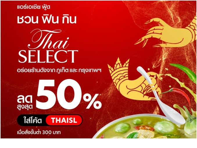 airasia Super App ผู้ให้บริการด้านการท่องเที่ยวแบบครบวงจรตั้งแต่การเดินทางทางอากาศจนถึงภาคพื้นดิน บริการเรียกรถรับส่ง จองตั๋วโดยสาร จองโรงแรมที่พัก และฟู้ดเดลิเวอร์รี่ เล็งเห็นถึงความสำคัญของการผลักดันอาหารไทยจากครัวตำรับท้องถิ่นสู่สากลอย่างต่อเนื่อง ได้ร่วมมือกับกรมพัฒนาธุรกิจการค้า กระทรวงพาณิชย์ นำร้านอาหารไทยที่ได้รับตรา Thai SELECT ซึ่งเป็นเครื่องการันตีความอร่อยของร้านอาหารไทยที่มีอัตลักษณ์เด่นเฉพาะตัวในท้องถิ่นมาเสิร์ฟความอร่อยให้ลูกค้ากรุงเทพฯและนนทบุรีได้ลิ้มลอง พร้อมโปรโมชั่นส่วนลดสูงสุดถึง 50% เมื่อสั่งเมนู Thai SELECT ผ่าน airasia food ระหว่าง 22 กุมภาพันธ์ - 5 มีนาคม 2566 (ยอดสั่งอาหารขั้นต่ำ 300 บาท / ไม่จำกัดสิทธิ์ต่อวัน) เพียงเท่านี้ลูกค้าก็จะได้ลิ้มรสอาหารไทยแท้รสชาติแบบออริจินอล พร้อมเสิร์ฟความอร่อยถึงหน้าบ้านแบบสดใหม่ในราคาถูกกว่าใคร