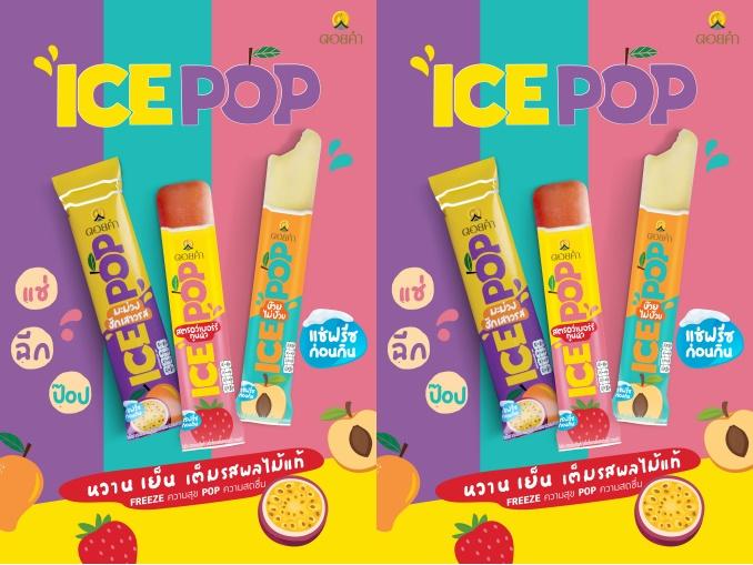 ด้วยวัตถุดิบผลไม้แท้จากสวนเกษตรกรไทย ที่ดอยคำคัดสรรคุณภาพแบบลูกต่อลูก บรรจุลงใน “ICE POP” กับ 3 รสชาติที่ลงตัวสุดขั้ว “บ๊วยไม่บ๊วย” เครื่องดื่มหวานเย็นบ๊วยผสมน้ำผึ้งและมะนาว, “สตรอว์เบอร์รีทูนหัว” เครื่องดื่มหวานเย็นสตรอว์เบอร์รี และ “มะม่วงฮักเสาวรส” เครื่องดื่มหวานเย็นมะม่วงผสมเสาวรส วิธีรับประทานคูลๆ “แช่ ฉีก ป๊อป” แช่ฟรีซ ในช่องทำน้ำแข็ง อย่างน้อย 8 ชั่วโมง ฉีกซองความอร่อย พร้อมป๊อปสุขได้ทุกสถานการณ์