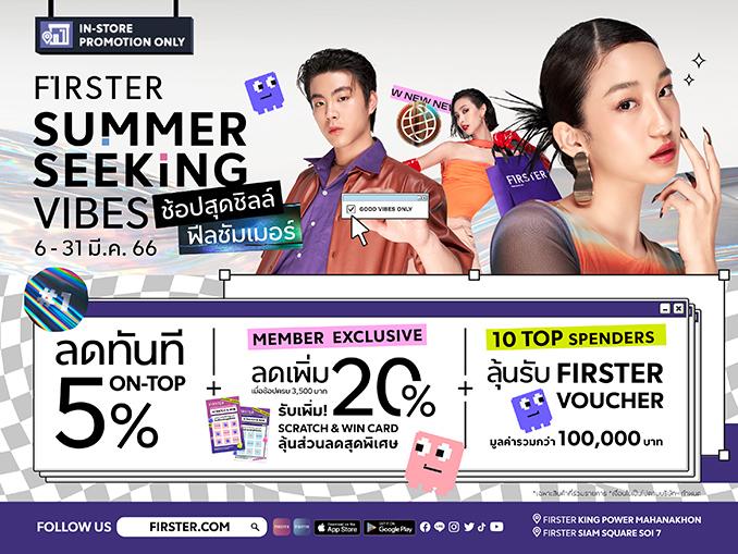 FIRSTER ต้อนรับซัมเมอร์สุดฮอตมาพร้อมโปรโมชั่นสุดร้อนแรง ช้อปสุดชิลล์ฟีลซัมเมอร์ ให้ช้อปเพลินตลอดเดือนมีนาคมนี้ จัดแคมเปญ “FIRSTER SUMMER SEEKING VIBES” ช้อปชิลๆ ที่หน้าร้าน พร้อมส่ง 3 ดีลสุดพิเศษ มอบความคุ้มค่าให้นักช้อป