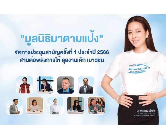 มูลนิธิมาดามแป้ง จัดการประชุมสามัญครั้งที่ 1 ประจำปี 2566 เดินหน้าช่วยเหลือสังคม มุ่งส่งเสริมงานด้านการพัฒนาคุณภาพชีวิตของสตรี เด็ก และเยาวชน กลุ่มเปราะบาง โดยเน้นด้านการศึกษาและกีฬา ตลอดจนการฝึกอาชีพ ณ ห้องประชุมชั้น 14 อาคารเมืองไทยประกันภัย เมื่อวันที่ 10 มีนาคม ที่ผ่านมา