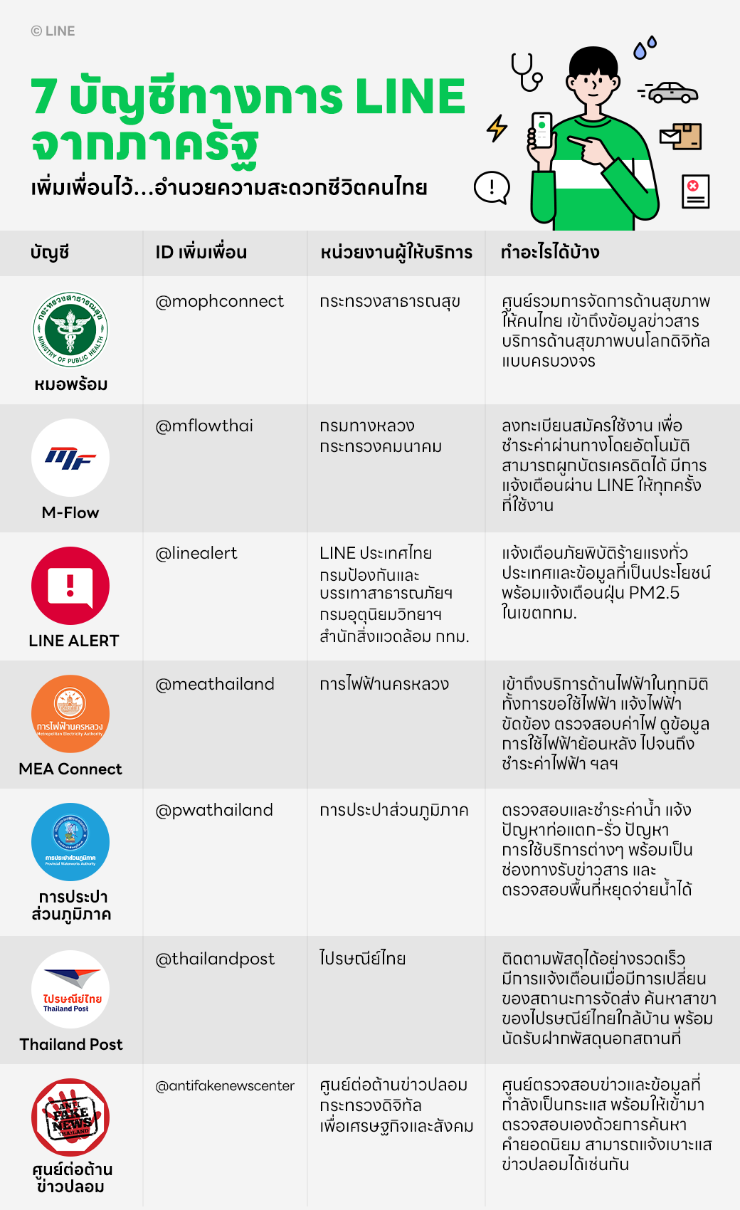 วันนี้ LINE ขอแบ่งปัน 7 บัญชีทางการจากภาครัฐที่จะทำให้คนไทยใช้ชีวิตแบบดิจิทัลได้ง่ายยิ่งขึ้น