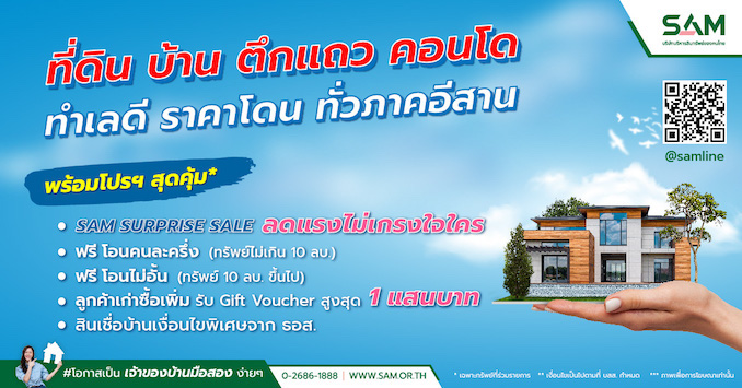SAM บริษัทบริหารสินทรัพย์ของคนไทย เจาะตลาดภาคอีสาน นำร่อง 6 จังหวัดหัวเมืองใหญ่ เดินสายจัดโรดโชว์ “SAM NPA Road Show 2023” ตลอด 4 เดือน มอบส่วนลดสูงสุด 20% พร้อมแคมเปญพิเศษจาก ธอส.