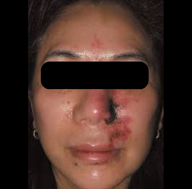1. มีการฉีดฟิลเลอร์เข้าไปอุดตันเส้นเลือด เมื่อไม่มีเลือดไปหล่อเลี้ยง เซลล์ผิวก็จะค่อยๆ ตายลง หากเป็นเส้นเลือดที่ส่งต่อไปดวงตาก็เสี่ยงต่อการตาบอดได้
