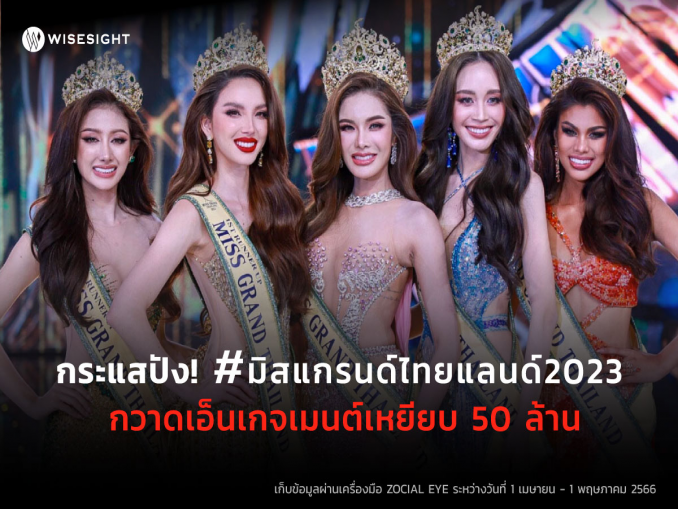 ไวซ์ไซท์ พามาส่องเทรนด์และประเด็นร้อนที่ชาวโซเชียลพูดถึงตลอดช่วงระยะเวลาการประกวด โดยเก็บข้อมูลตั้งแต่วันที่ 1 เมษายน - 1 พฤษภาคม 2566 ผ่านเครื่องมือ ZOCIAL EYE ปรากฎว่าจำนวนข้อความภายในหนึ่งเดือนมีการพูดถึงมากกว่า 50,000 ข้อความ คิดเป็นเอ็นเกจเมนต์รวมกว่า 50 ล้านเอ็นเกจเมนต์ จากกว่า 7,000 แอคเคาท์ในทุกช่องทางโซเชียลมีเดียในไทย เฉลี่ยต่อวันมีการพูดถึงมากกว่า 1.6 ล้านเอ็นเกจเมนต์ ถือว่าสูงมากๆ เลยทีเดียวเมื่อเทียบกับการประกวดนางงามในปีก่อนหน้า โดยวันที่มีการพูดถึงสูงที่สุดเกิดขึ้นในวันที่ 29 เมษายน 2566 ซึ่งเป็นวันที่ประกาศรางวัลนั่นเอง