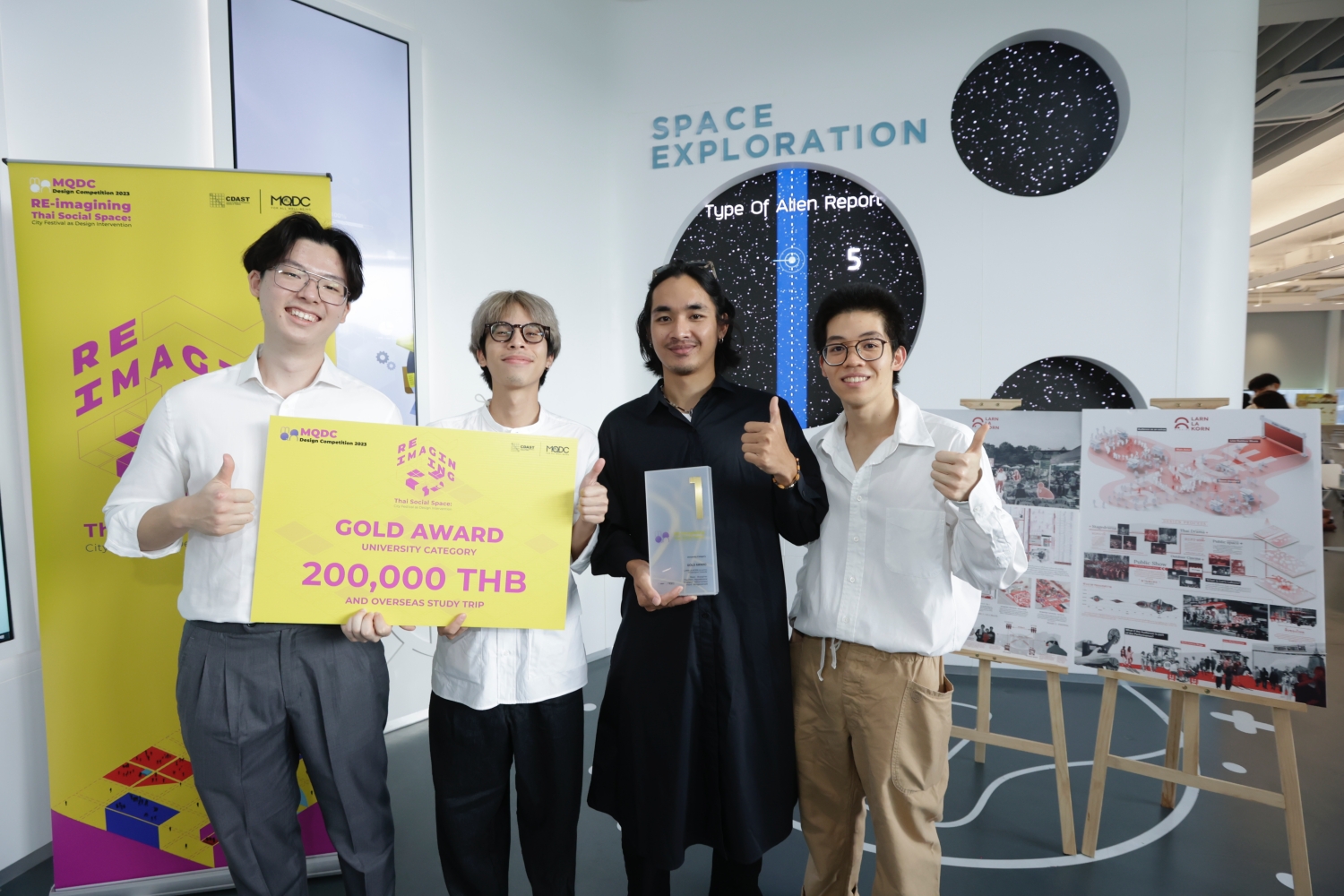 MQDC Design Competition 2023 มีทีมนิสิตนักศึกษาและบุคคลทั่วไปให้ความสนใจ โดยแบ่งรางวัลออกเป็นทีมชนะเลิศ รองชนะเลิศ 2 อันดับ และรางวัลชมเชย ซึ่งทีมนักศึกษาที่ได้รางวัลชนะเลิศ (Gold) ได้แก่ ทีม A222 จากจุฬาลงกรณ์มหาวิทยาลัยกับผลงาน “ลานละคร” และทีมบุคคลทั่วไป ได้แก่ ทีม B124 กับผลงาน “อ้อ-มา-กา-เสะ” ซึ่งนอกจากจะคว้าเงินสนับสนุนทีมละ 200,000 บาทแล้ว และทั้ง 2 ทีม จะได้ไปดูงานออกแบบพื้นที่สาธารณะในต่างประเทศ