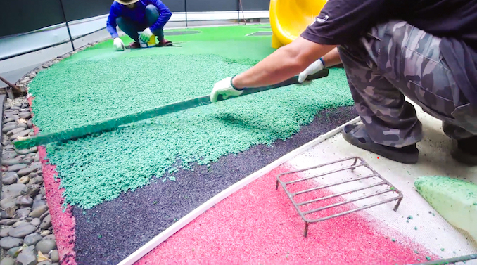 นอกจากนี้แล้ว ECOGROUND™ ยังได้ผสานคุณสมบัติบัติความทนแดดของอะคริลิก จึงแข็งแรงคงทนในทุกสภาวะอากาศ อีกทั้งยังช่วยให้ผู้ใช้ปลอดภัยยิ่งขึ้น เพราะพื้นมีความยืดหยุ่นช่วยรองรับแรงกระแทก และยังมีความฝืดที่พอเหมาะ"
