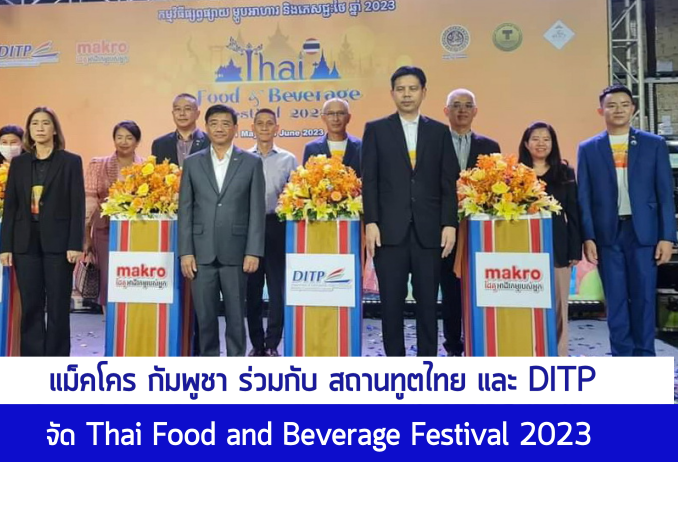 จากกระแสความนิยมสินค้าไทย ที่เพิ่มมากขึ้นอย่างต่อเนื่องในต่างประเทศ ล่าสุด แม็คโคร กัมพูชา ร่วมกับ สถานทูตไทย และ กรมส่งเสริมการค้าระหว่างประเทศ (DITP) จัดกิจกรรม Thai Food and Beverage Festival 2023 ต่อเนื่องเป็นปีที่ 5 ที่ แม็คโคร สาขา เซ็นสก, จรอย จางวา และเสียมเรียบ เพื่อส่งเสริมสินค้ายอดนิยม ตลอดจนอาหารและเครื่องดื่มคุณภาพจากประเทศไทย ที่ได้รับการตอบรับเป็นอย่างดี ไม่ว่าจะเป็น ทุเรียนหมอนทอง เงาะ มะม่วงน้ำดอกไม้ กะทิชาวเกาะ ทองการ์เด้น ฯลฯ โดยงานนี้ได้รับเกียรติจาก นายเชิดเกียรติ อัตถากร เอกอัครราชทูต ณ กรุงพนมเปญ เป็นประธานเปิดงาน