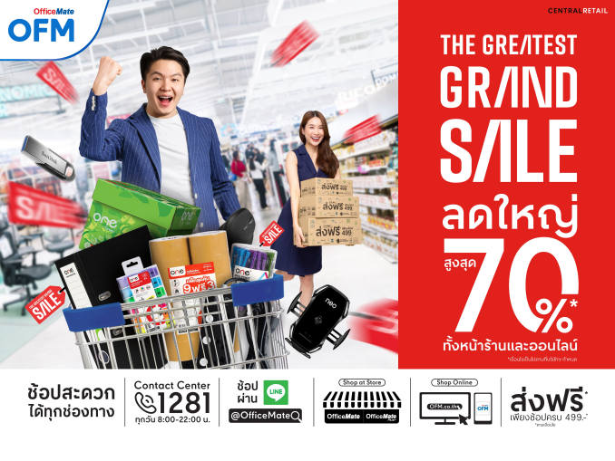 ออฟฟิศเมท และ ออฟฟิศเมท พลัส ในเครือเซ็นทรัล รีเทล จัดมหกรรมเซลกลางปี ให้ SME แฮปปี้ทั่วไทย กับแคมเปญ “The Greatest Grand Sale” ลดใหญ่สูงสุด 70%* ทั้งหน้าร้านและออนไลน์ ตลอดเดือนกรกฎาคม 2566 พบกับสินค้าน่าช้อปจากแบรนด์ชั้นนำที่ขนขบวนมาลดราคาจัดเต็มรวมกว่า 20,000 รายการ สามารถเลือกช้อปได้ตามความต้องการ เพราะมีโปรโมชั่นดีๆ ครบครันทุกกลุ่มสินค้าที่ธุรกิจต้องใช้ ทั้งอุปกรณ์สำนักงาน ไอที อิเล็กทรอนิกส์ ปริ้นเตอร์ เฟอร์นิเจอร์ อุปกรณ์ทำความสะอาด สินค้าโรงงาน และอีกเพียบพิเศษสุดๆให้คุณช้อปคุ้มยิ่งขึ้น กับคูปองส่วนลดสุดเซอร์ไพรส์ตลอดทั้งเดือน