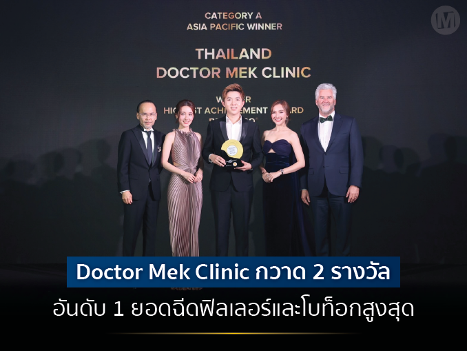 เรียกว่า “Doctor Mek Clinic” ยืนหนึ่ง! กวาดเรียบรางวัลทั้งสองบริการ ประจำปี 2023 ทั้ง “อันดับ 1 ยอดฉีดฟิลเลอร์สูงสุดในเอเชีย” และ “อันดับ 1 ยอดฉีดโบท็อกสูงสุดในเอเชีย”