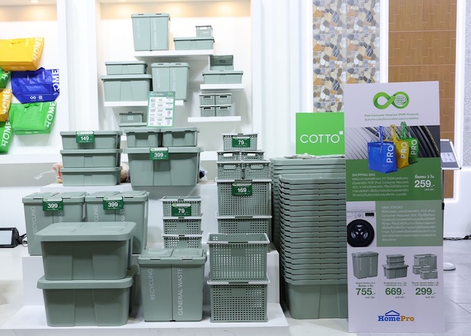 สินค้ากลุ่มบรรจุภัณฑ์กระดาษ มีการรวบรวมกล่องกระดาษลัง นำมารีไซเคิลเป็นกล่องของขวัญ หรือ บ้านกระดาษแมว, สินค้ากลุ่มเซรามิค มีการนำสุขภัณฑ์เก่ามารีไซเคิลผลิตเป็นกระเบื้องเซรามิค และ สินค้ากลุ่มพลาสติก มีการนำเม็ดพลาสติกจากแหล่งต่างๆ มา upcycling เป็นถุง ช้อปปิ้ง และกล่องพลาสติกต่างๆ ซึ่งวันนี้มีเปิดตัวและจำหน่ายให้กับผู้เข้าร่วมงานที่เป็นสายรักษ์โลก ภายในงาน ‘โฮมโปร เอ็กซ์โป’ ครั้งนี้”