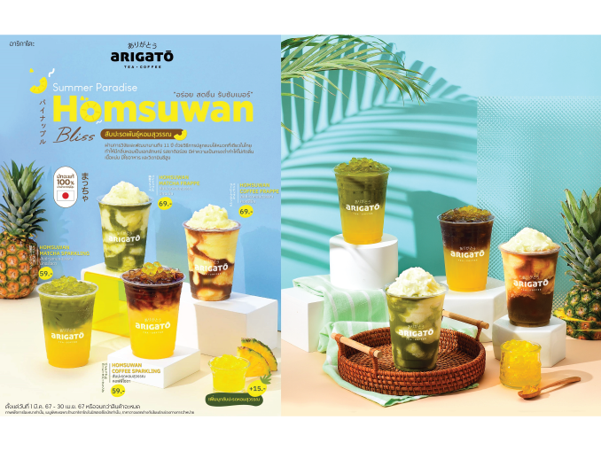 อาริกาโตะ (Arigato) แบรนด์เครื่องดื่มสไตล์ญี่ปุ่น บริหารงานโดยบริษัท เซ็นทรัล เรสตอรองส์ กรุ๊ป จำกัด (ซีอาร์จี) ย้ำความเป็นแบรนด์แห่งการ Collaboration ผนึกกำลังกับ บริษัท ทิปโก้ เอฟแอนด์บี จำกัด ชวนทุกคนมาเปิดประสบการณ์เครื่องดื่มใหม่ กับ Arigato Summer Paradise Homsuwan Bliss