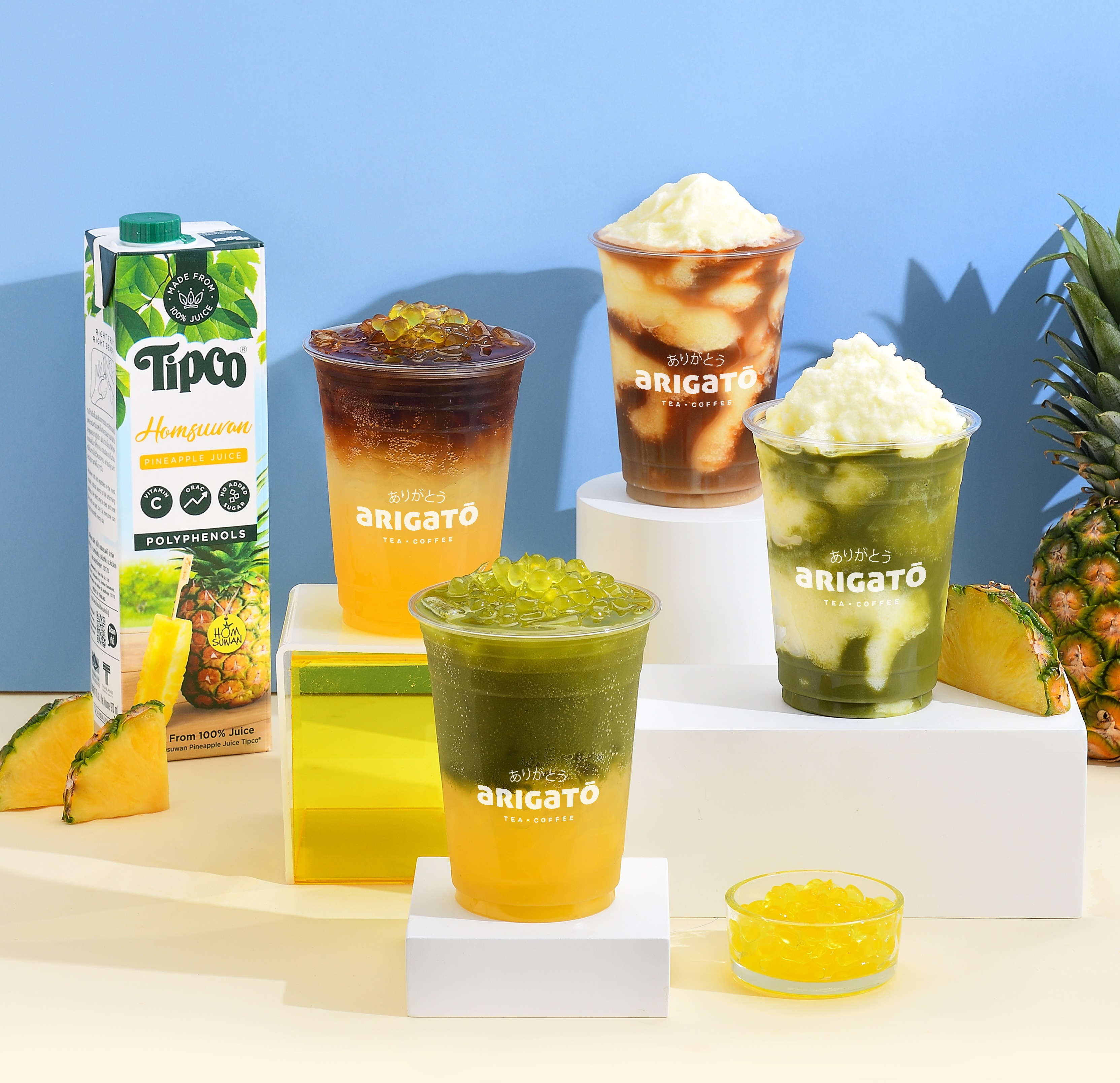 มาสัมผัสความอร่อยสุดสดชื่นกับเครื่องดื่มดับร้อนช่วงซัมเมอร์ที่ผสานความสดชื่นจากสับปะรดสายพันธุ์หอมสุวรรณ ที่จะเพิ่มความสนุกให้ซัมเมอร์นี้ ให้สดชื่นกว่าที่เคยได้แล้ว ตั้งแต่วันนี้ จนถึง 30 เมษายน 2567 หรือจนกว่าสินค้าจะหมด ที่ร้านอาริกาโตะทุกสาขา