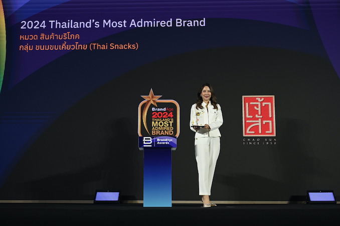 “เจ้าสัว” คว้ารางวัล Thailand’s Most Admired Brand ปี 2024 จากนิตยสาร BrandAge ในหมวด อุปโภคและบริโภค กลุ่ม “ขนมขบเคี้ยวไทย (Thai snacks)” เป็นปีที่ 2 ติดต่อกันจากนิตยสาร BrandAge สื่อชั้นนำด้านการตลาด ตอกย้ำความเป็นผู้นำในตลาดขนมขบเคี้ยวไทยที่ยกระดับคุณภาพสินค้าพร้อมขยายตลาดต่างประเทศ โดยครองส่วนแบ่งทางการตลาดข้าวตังและขนมขบเคี้ยวแปรรูปจากเนื้อสัตว์ เช่นหมูแท่ง สูงสุด
