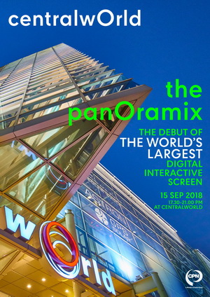 เอาใจทราเวลเลอร์ทั่วโลก และผู้หลงใหลในงานศิลป์ บริษัท เซ็นทรัลพัฒนา จำกัด (มหาชน) หรือ ซีพีเอ็น ผู้นำด้านพัฒนาอสังหาริมทรัพย์เพื่อการค้าปลีกของไทย จับมือกับ บริษัท แพลนบี มีเดีย จำกัด (มหาชน) ผู้นำด้านนวัตกรรมสื่อโฆษณาของไทย ปักหมุดแลนด์มาร์คท่องเที่ยวแห่งใหม่ระดับเอเชีย ที่จะเชื่อมโยงเซ็นทรัลเวิลด์เข้ากับ Global Landmark ที่สำคัญทั่วโลก ชวนชมมัลติมีเดียโชว์ แสง สี เสียง เอ็ฟเฟกต์สุดตระการตา การเชื่อมโยงมิติแห่งสีสันของมนต์เสน่ห์เมืองไทย สู่เทคโนโลยีที่ทันสมัยที่สุด ที่จะปลุกใจกลางเมืองของกรุงเทพฯ ให้สว่างไสวไปกับโชว์พิเศษที่ไม่เคยมีที่ไหนมาก่อน!! ได้แก่โชว์ ‘Colors of Bangkok’ และ โชว์ ‘Heritage of Bangkok’ บนจอ “the panOramix @CentralWorld” จอ Digital Interactive LED ที่ใหญ่ที่สุดในโลก!! ขนาด 3,790 ตารางเมตร เปิดให้ชมฟรีทุกวัน วันละ 2 รอบ เวลา 19.00 น. และ 20.00 น. ตั้งแต่วันที่ 15 กันยายน 2561 เป็นต้นไป ณ ลานหน้าเซ็นทรัลเวิลด์