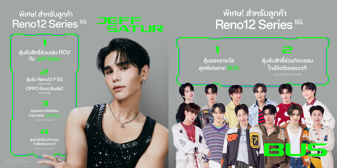 พิเศษสุดสำหรับลูกค้า OPPO Reno12 Series 5G ลุ้นรับของรางวัล, สิทธิ์ถ่ายภาพกับหนุ่มเจฟ ซาเตอร์ และของรางวัลจากหนุ่มๆ วง BUS ลุ้นรับสิทธิ์เข้าร่วมงาน 4 ขั้นตอนง่ายๆ เพียงแค่