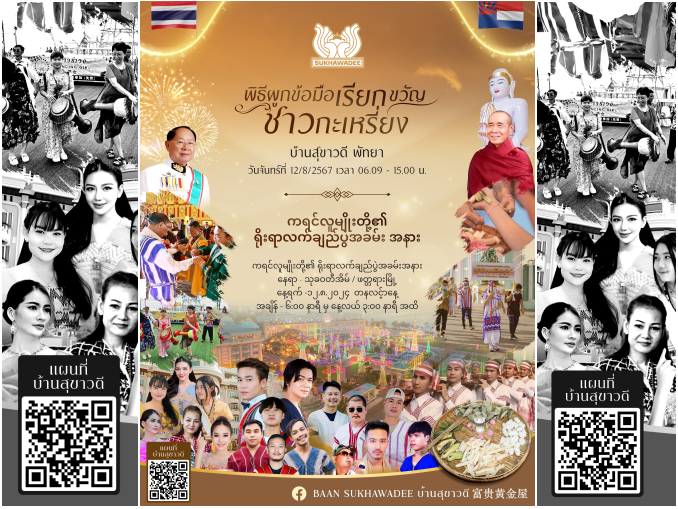 ซึ่งในปีนี้บ้านสุขาวดี ได้ถือฤกษ์ตรงกับวันจันทร์ ที่ 12 สิงหาคม 2567 เวลา 06:09 น. – 15:00 น. ทำการจัดพิธีเรียกขวัญ ให้แก่ชาวกะเหรี่ยงจำนวนมาก ที่มาอาศัย ทำงานอยู่ย่านพัทยา ชลบุรี ตลอดจนกรุงเทพมหานครและปริมณฑล ได้สามารถเดินทางมาร่วมประกอบพิธี โดยเชิญชวนพร้อมใจกันแต่งชุดประจำเผ่าและเดินทางมาที่บ้านสุขาวดี พัทยา เพื่อร่วมกิจกรรม เรียกขวัญและกำลังใจให้กลับคืนมา และสามารถพบปะเพื่อนฝูง ญาติมิตรให้คลายความคิดถึงบ้านเกิดกันได้